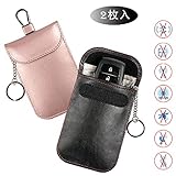 電波遮断ポーチ スマートキーケース リレーアタック対策 スキミング防止 圏外ポーチ 盗難防止 高級皮革 2枚セット ブラック+ローズゴールド ![]()