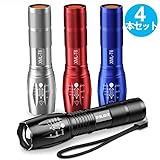 BYBLIGHT 懐中電灯 led ズーム式 5モード切替 800ルーメン 超高輝度 T6 ledライト 4個セット 12ヶ月保証