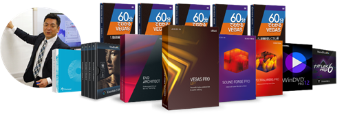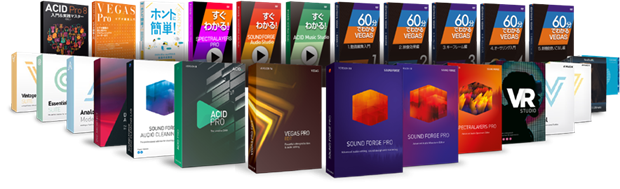 「VEGAS PRO」をはじめ、新製品の「SOUND FORGE Pro 12+13」や、多数の解説ビデオやガイドブックを付けた、全製品のセット