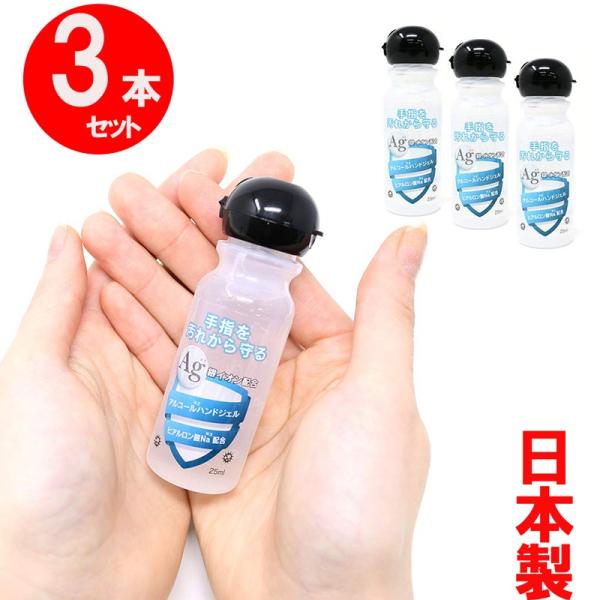 【3個セット 在庫あり】アルコールハンドジェル 日本製 除菌ジェル 25ml 銀イオン配合 ヒアルロン酸Na配合 洗浄 殺菌 消毒 (25ML-3)