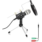 Kumako コンデンサーマイク 卓上 スマホ カラオケ レコーディング 録音 生放送 ゲーム実況 三脚スタンド付き 3.5mmジャック接続 iPhone/Android/PCなど対応