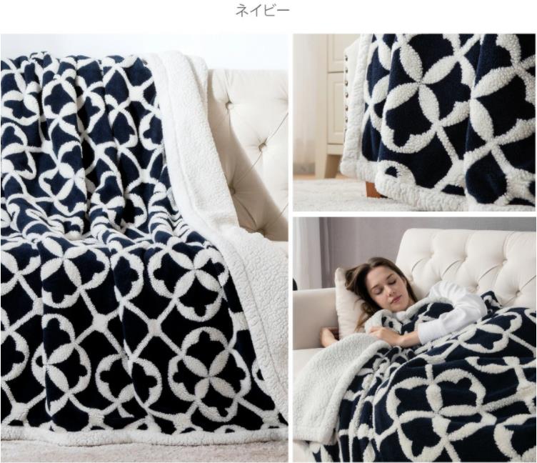 毛布 シングル 北欧風 2枚合わせ コットンフリース マイクロファイバー 両面使える 軽量 四つ葉のクローバー ふわふわ もこもこ ネイビー ベッド リビング お洒落