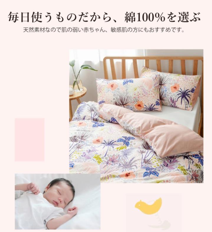 掛け布団カバー シングル 可愛い 枕カバー 2点セット 綿100% フラワー柄 プリント コットン 通気 吸湿 天然素材 お肌に優しい ピンク 和洋兼用