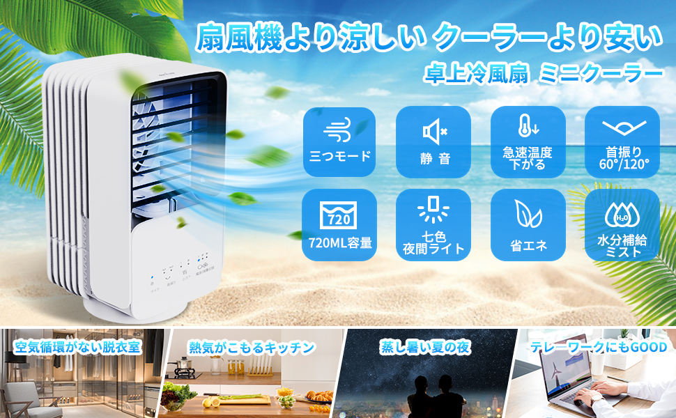 【2021年最新アップグレード版】この製品は市場に販売されている同等タイプの欠点を改良した多機能の冷風機です。①水こぼれ解決!横の上下風向き設計はミストで結露した水滴はブラインドにたまって、水タンクに戻ります。②フィルターのカビ生え解決!二つの綿棒フィルターカートリッジを搭載するので、吸い込んだ水を浄化して繊細なミストを爽やかな風と共に届けます。③超大口径720ML 水タンク、水や氷が入れやすい。