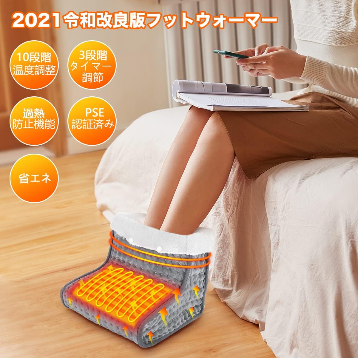 ELEOPTION 2021令和 フットウォーマー 足温器 10段階温度調整 電気足温器 ホットフットヒーター 足元 ヒーター あったかグッズ