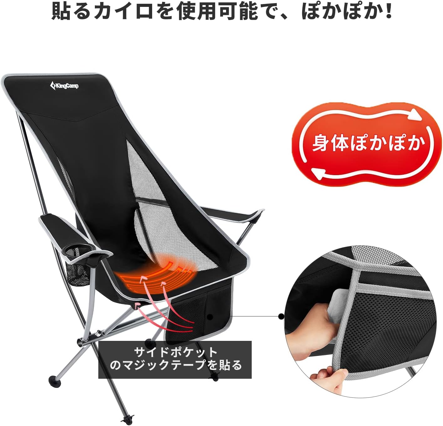 KingCamp キャンプ チェア 折り畳み椅子 貼るカイロ使用可 航空機級アルミウム合金採用