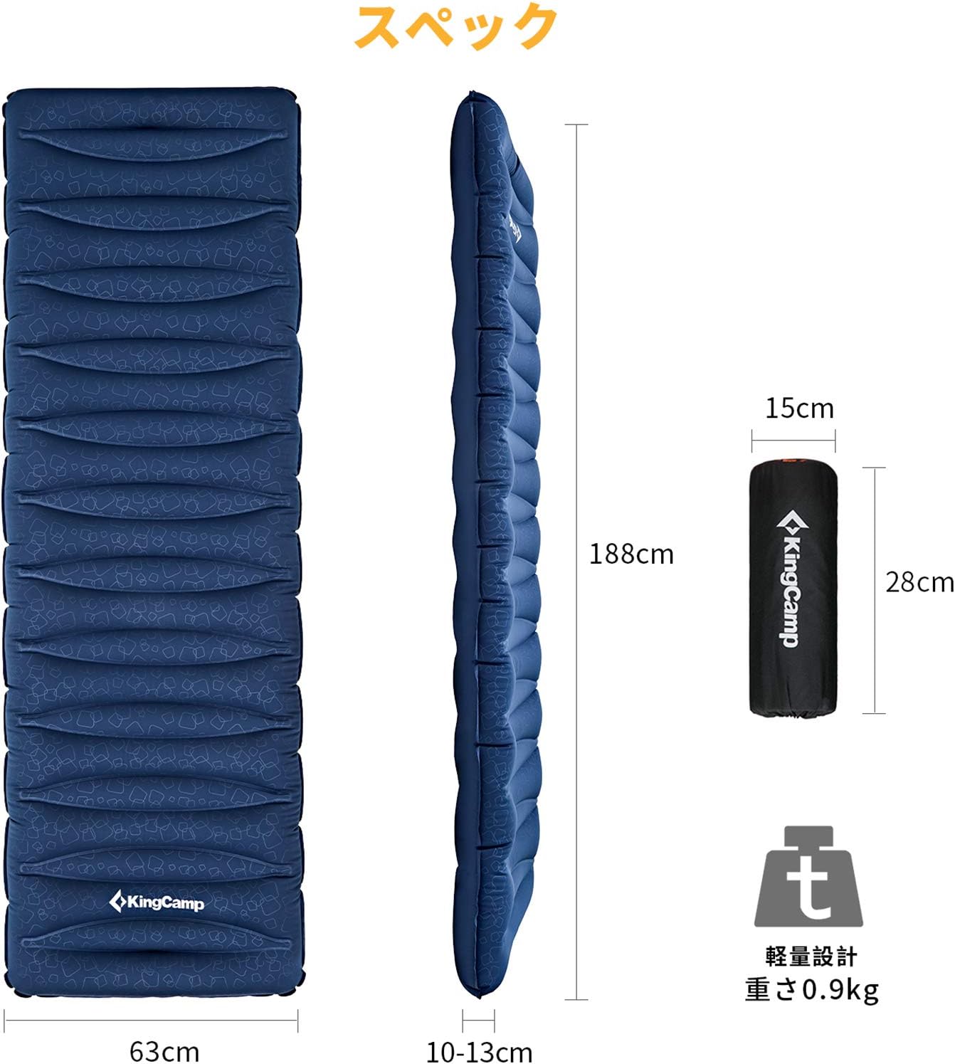 KingCamp エアーマット 厚さ10cm 中凹デザイン I形構造 TPU生地 30D弾力布 Blue シングル
