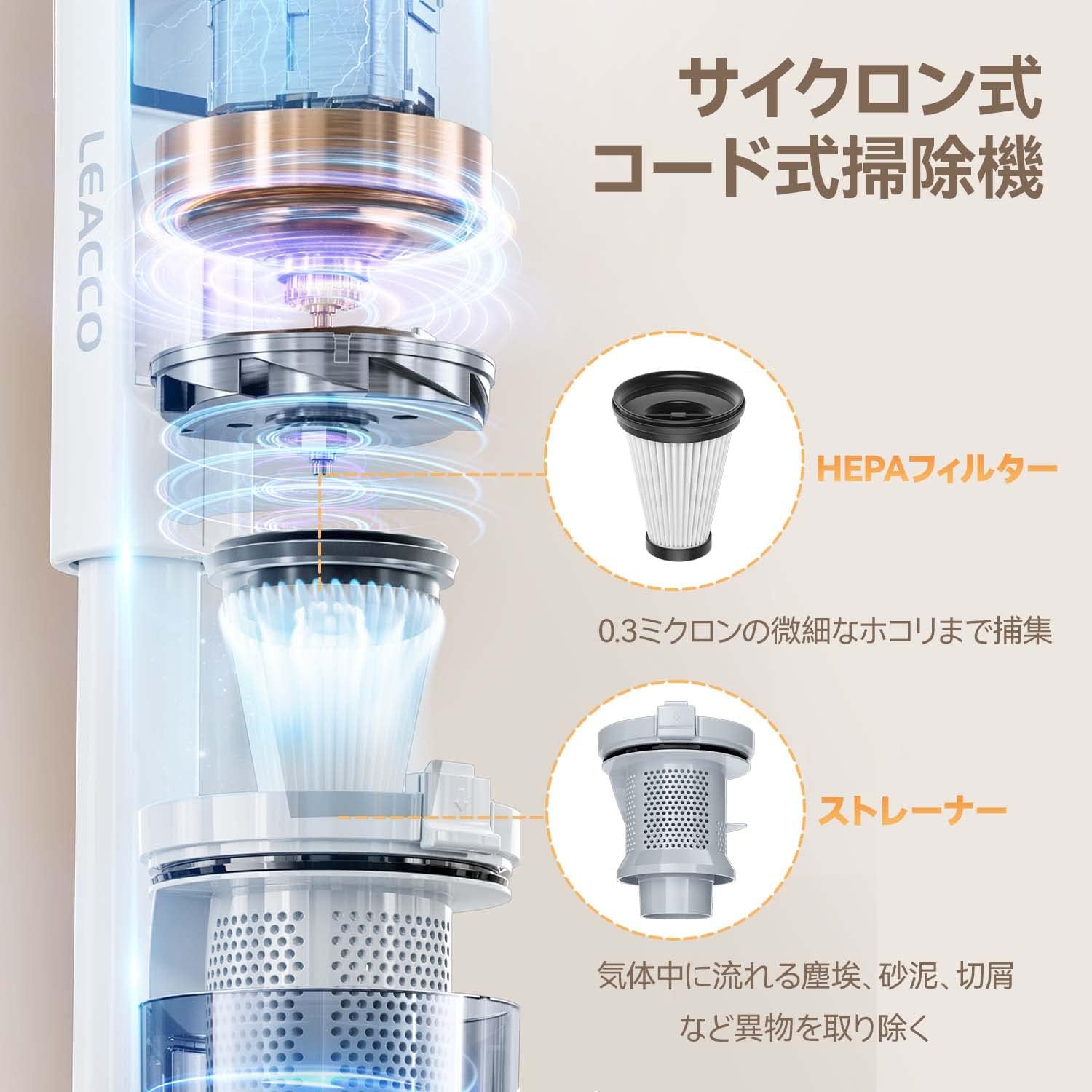 Leacco 掃除機 コード式 サイクロン 軽量 30000Pa スティッククリーナー ハンディ掃除機 2WAY