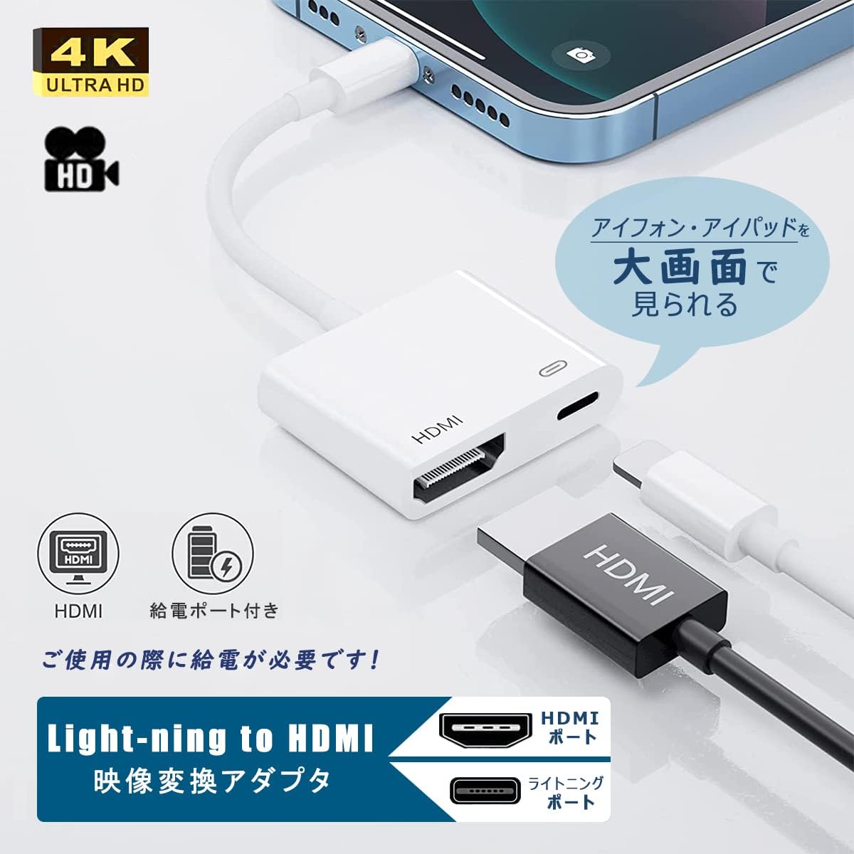 携帯の画面をテレビに映す AV/TV視聴 HDMI変換ケーブル 娯楽/仕事/オフィス/ホーム兼用 日本語取扱説明書付き i-Phone/i-Pad/最新i-OSに対応