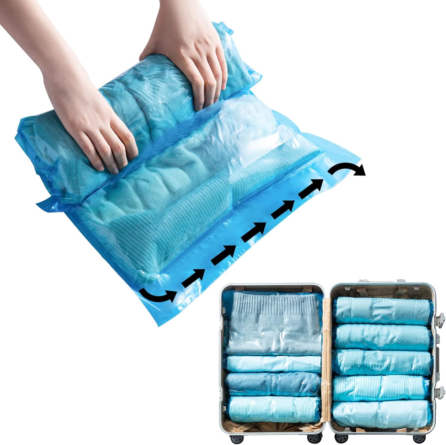 Umi(ウミ) 圧縮袋 旅行圧縮袋 布団 衣類 洋服 収納 掃除機 ポンプ不要 押すだけ簡単圧縮 防塵防湿 防カビ 再利用可能な収納☆