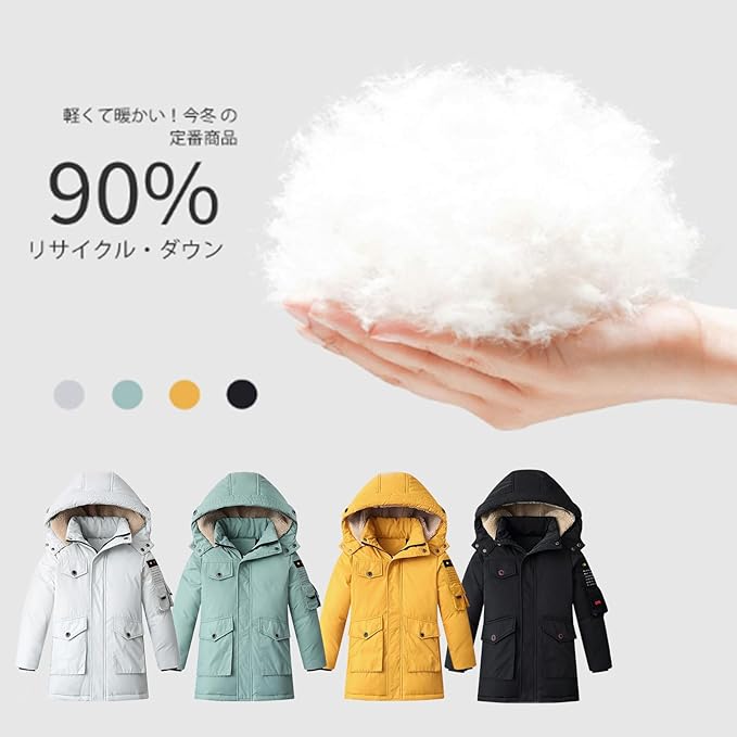 LUlala キッズ ダウンコート ダウンジャケット ダウン90% 中綿コート 防寒 フード付き