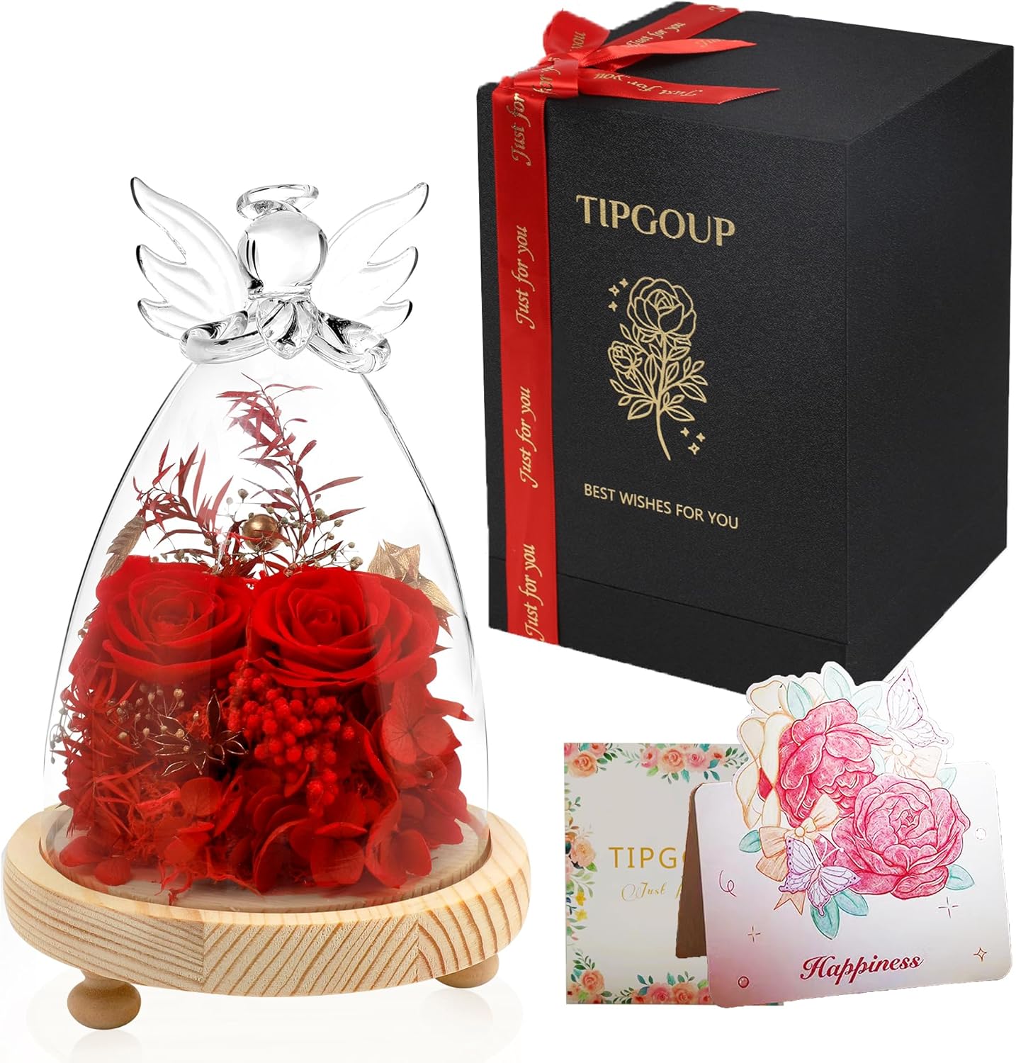 【非公開Wクーポンで28%OFF+1,300円OFF】送料無料 Amazon TIPGOUP プリザーブドフラワー 誕生日プレゼント 女性 母の日 お花 ギフト 枯れない花 バラ 結婚記念日 退職祝い 敬老の日 2輪の薔薇 エンジェル ガラスドーム プレミアムギフトボックス付き 2024.04.21まで