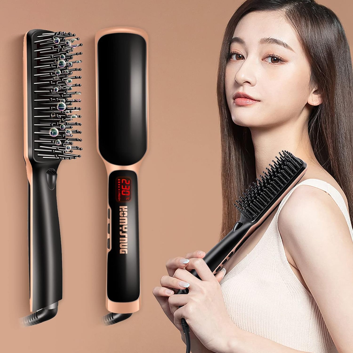 ウルハーバースタイル ストレートブラシ ヒートブラシ 【丸いピンで頭皮を優しく刺激】【超高濃度マイナスイオンでツヤ感UP】 縮毛改善 30秒間急速加熱 21段階温度調節