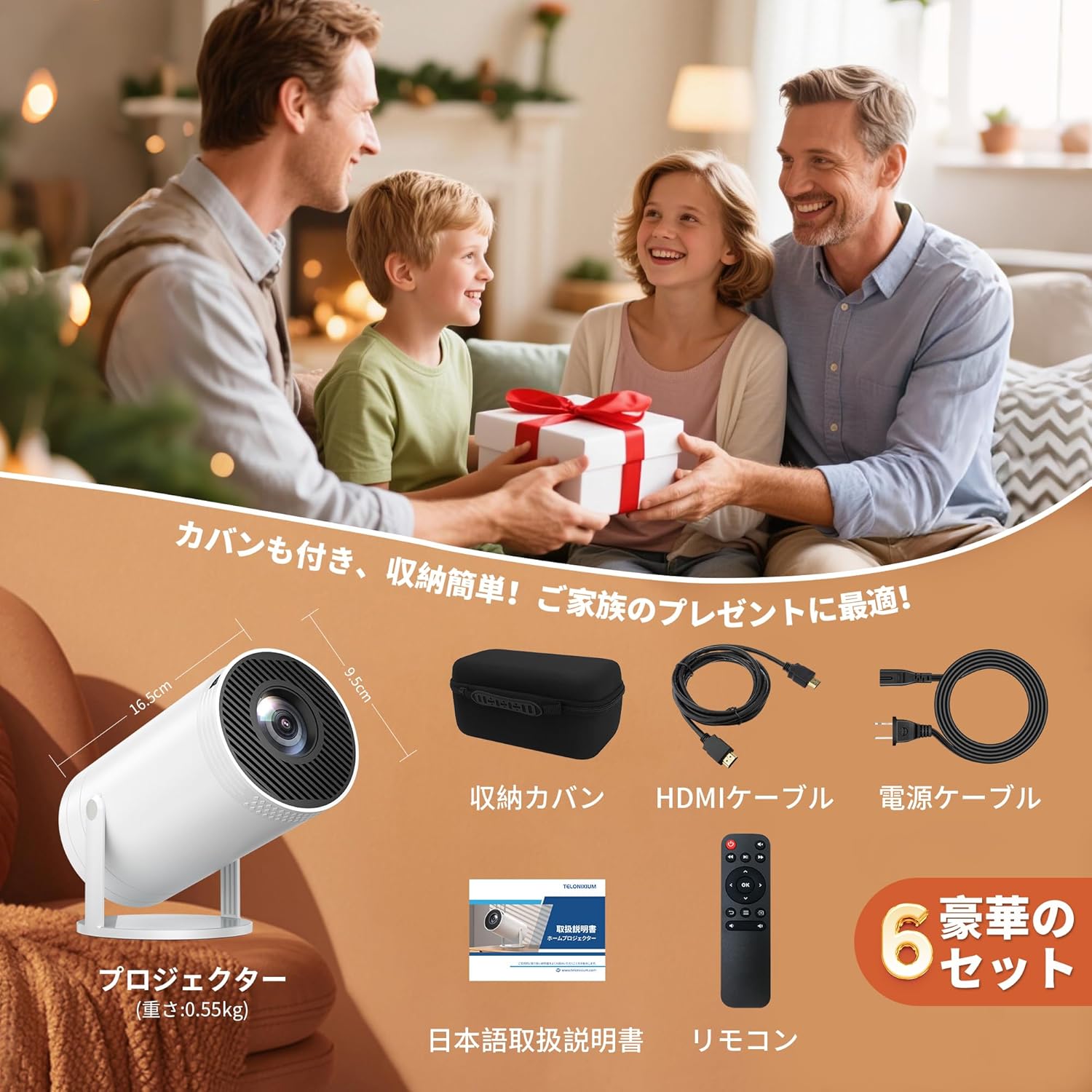 Telonixium「収納カバン付き&スマホ接続&天井投影&4Kサポート」2025年強化版プロジェクター 家庭用 1080P 電動垂直台形補正 270°回転スタンド一体型 HiFiスピーカー内蔵 50%ズーム ホームプロジェクター