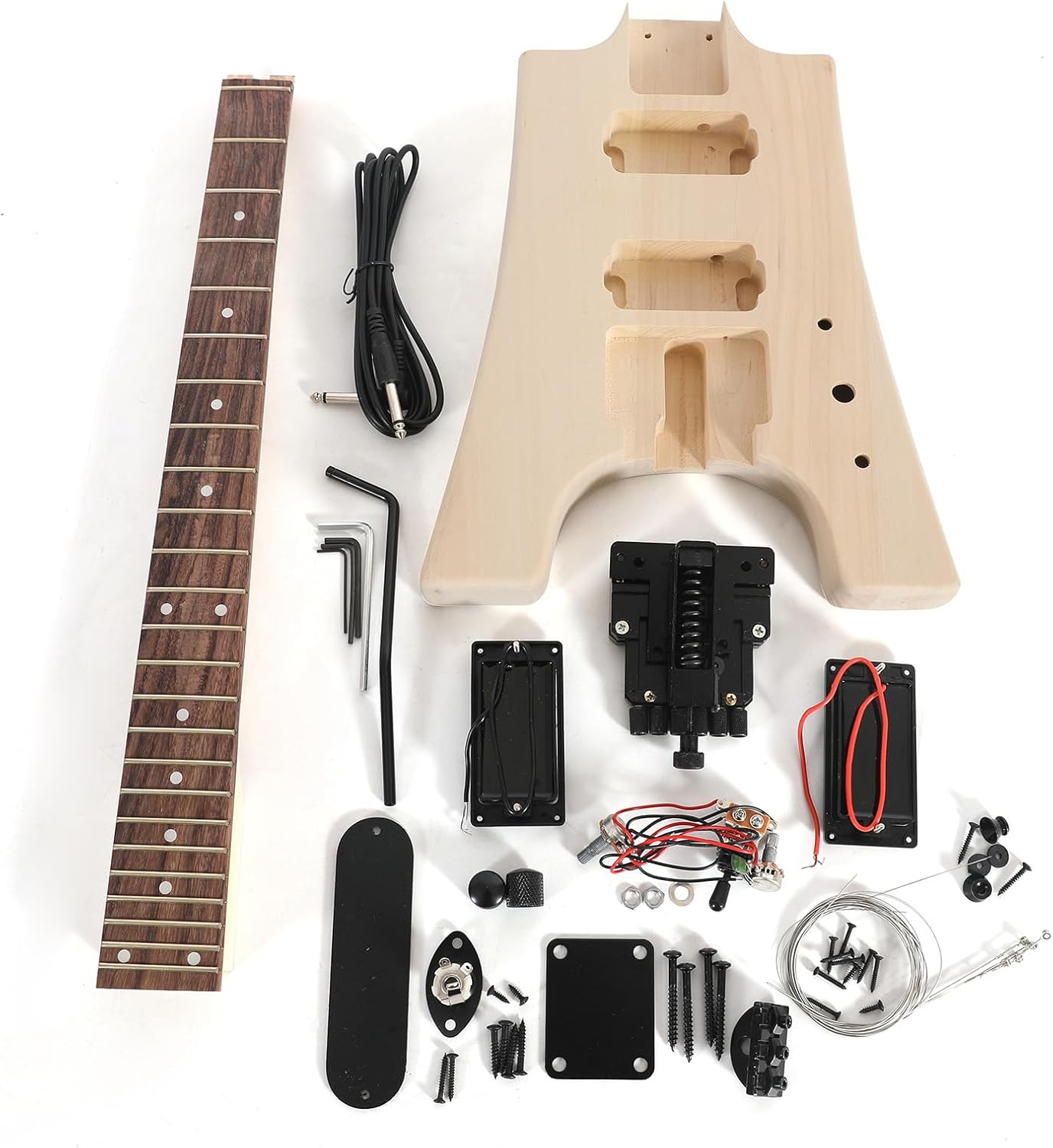 Btuty DIY 未完成エレキギターキット ギター 組み立てキット ギターバレルブランク木製ギターボディ交換部品バスウッドボディメープルネック 2 二重線サークル☆