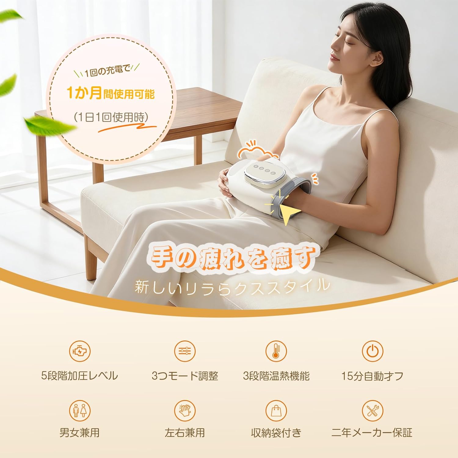 ハンドマッサージ機 【5段階加圧×3モード×🔥3段階温熱で手をしっかりケア・どこでも手軽にケア・大切な方へのプレゼントに】