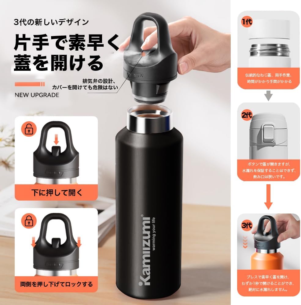 【非公開クーポンで50%OFF】1,810円~1,915円 送料無料 Amazon Kamiizumi ステンレスボトル サイズが選べる900ml 640ml 水筒 スポーツボトル 真空断熱 大容量 持ち運び 直飲み ロック機能付き蓋 2026.03.13まで