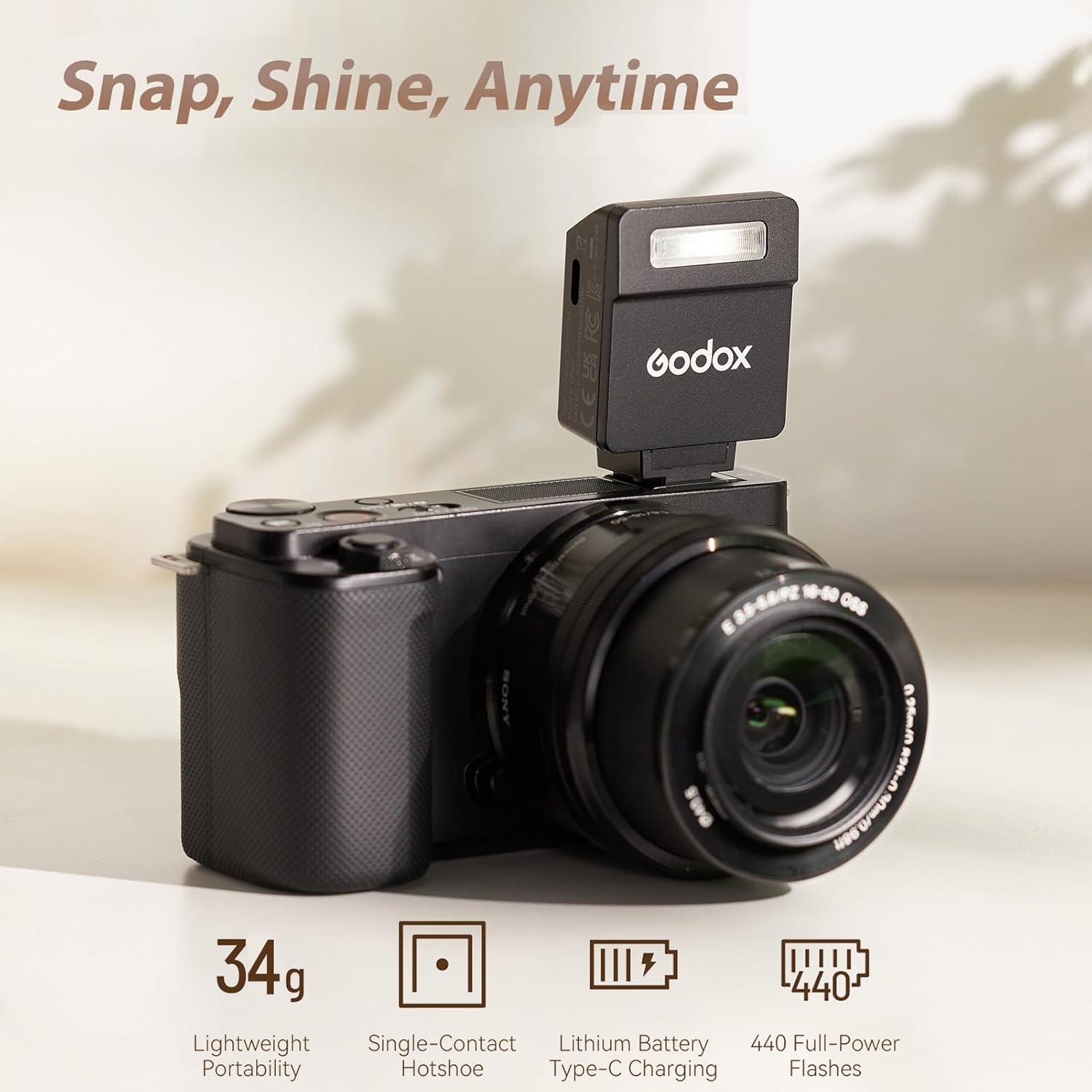 Godox iM22 カメラフラッシュ、ミニフラッシュスピードライト、440 フルパワーフラッシュ、シングルコンタクトホットシュー、Fuji/Sony/Nikon/Canon/Olympus カメラ用内蔵リチウムバッテリー (iM22)☆