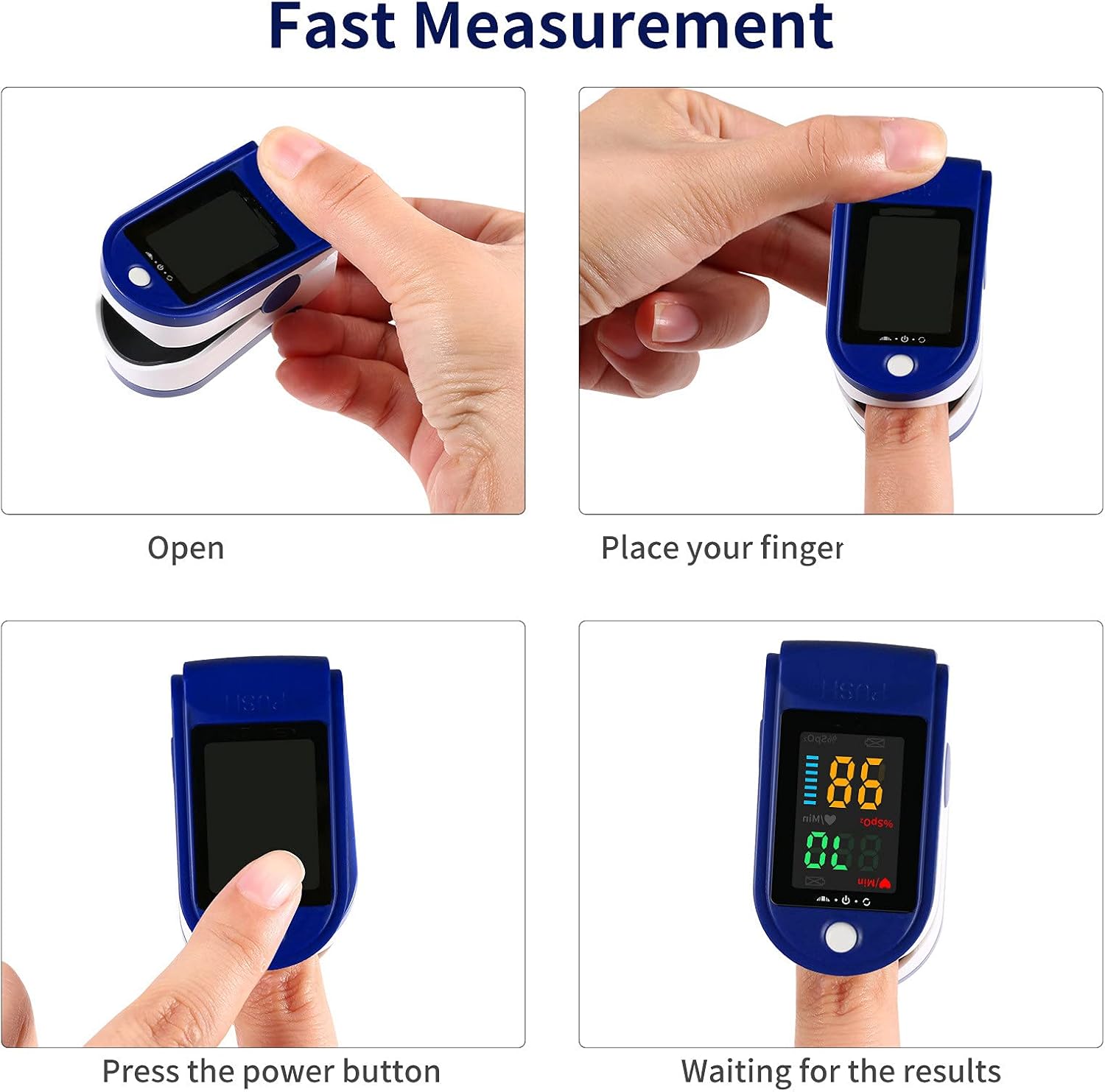 ミニ指先クリップの電源を入れ、ミニ指先クリップのシリコン穴に指を入れます。次に、クランプを解放し、ボタンを押すと、機器が動作状態になります。低消費電力、OLEDクリアディスプレイ、2方向に調整できるので読みやすくなっています。高齢者でも、値を正確かつ簡単に読み取ることができます。便利でコンパクト、ストラップ付き、家庭や旅行での使用に持ち運び可能。問題がございましたら、お早めに当店までご連絡ください。私たちはあなたに満足のいく解決策を提供します。